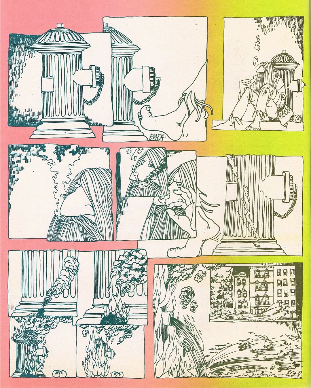 1970s imagery from Actuel, a French countercultural magazine that heavily featured American underground all-stars like Crumb, John Thompson, Rick Griffin, Fred Schrier and many others (and later introduced hip-hop to Europe in the early ‘80s) 👊