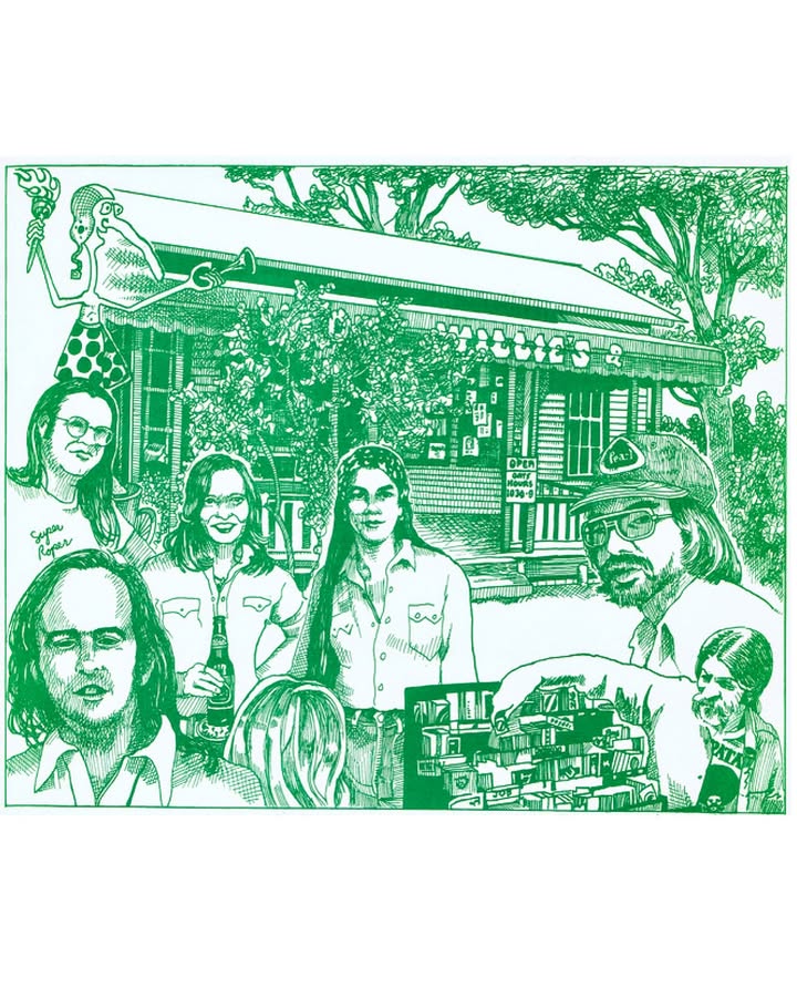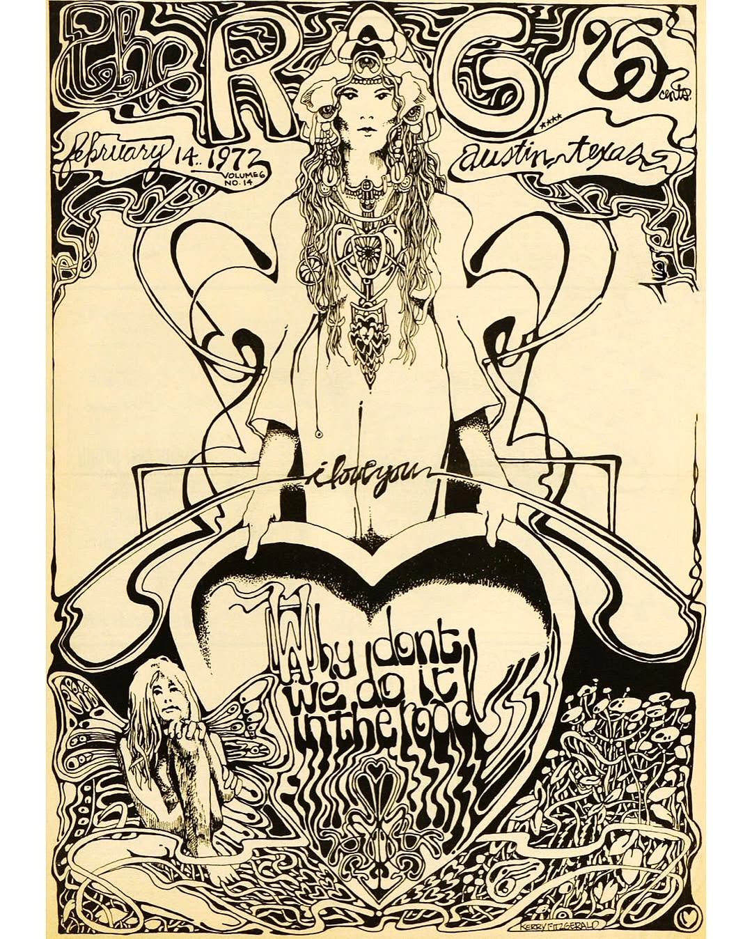 ‘70s → ‘80s work by Kerry Fitzgerald aka Kerry Awn. He’s well known in Austin for his Austintatious mural (and classic underground comic of the same name) from 1973, which was basically the first mural in a city full of murals. In the ‘80s he became a popular stand-up comedian in Texas.