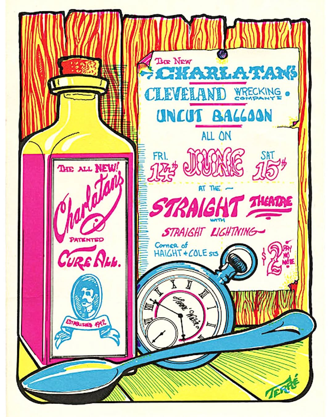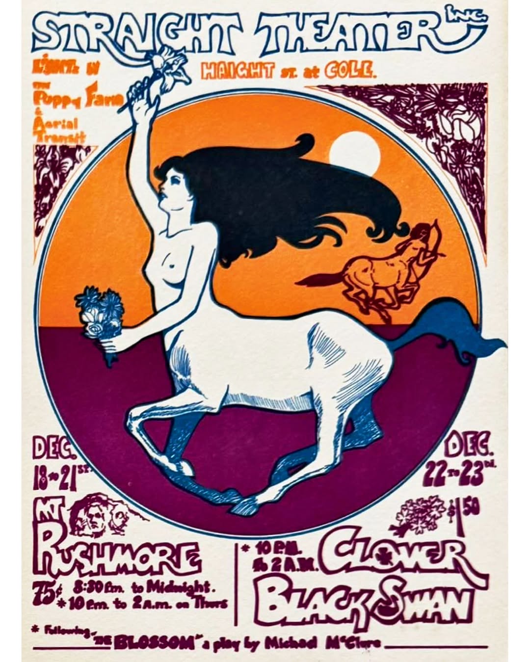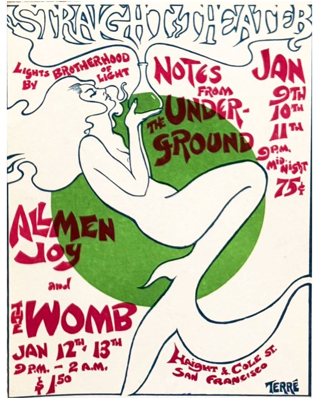 1969ish handbills by Nathan Terre for shows at the Straight Theater in the Haight, which was located where the Goodwill is now on Haight Street.