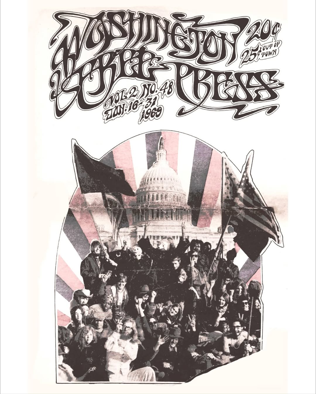 Imagery and ads from Washington Free Press out of Washington, D.C., 1969
